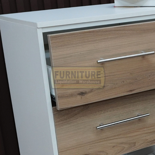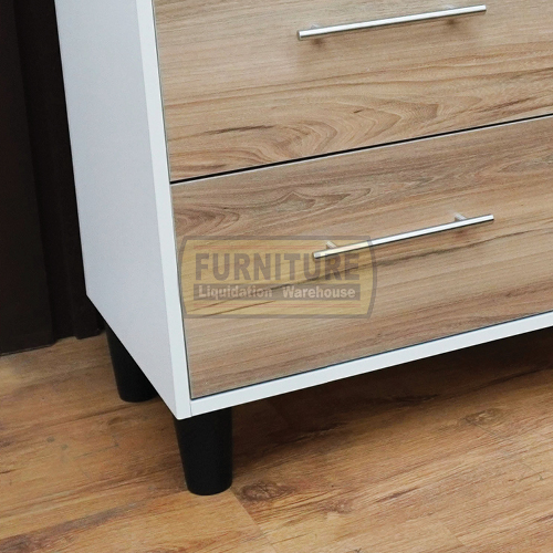 The Lisa Chest of Drawer is finished in a two-tone with steel handles.